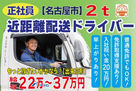 職種/仕事内容 | 仕事内容 【仕事内容】 2t平ボディートラックに乗っていただき、 大手石膏ボードメーカーの製品の配送をお願いします! 配送先は、ビル、マンション、住宅、 建設現場への輸送、及び工務店、材木問屋、 ホームセンターなどになります。 ■配送エリア:名古屋市近郊(愛知県内) ■車両:2t平ボディー ■積み降ろし方法:フォークリフト積 手卸・フォークリフト卸・レッカー卸(配送先により異なる) ■取扱商品:石膏ボード 【おすすめポイント】 ★入社祝い金あり! ★物流業界未経験の方も大歓迎! ★20~40代の方活躍中! ★深夜・日跨ぎの運行無し!夕方には退社でき、 自分の趣味やご家族との団欒の時間も作れます。 ★特別賞与実績あり ★GW・夏季・年末年始大型連休有 ★基本一人一車制(空き車両に乗り換え有) ★デジタコ・ドラレコ・バックモニター全車搭載! ★「働きやすい職場認定制度」の二つ星を獲得している企業です! ★アットホームな雰囲気の会社! 名古屋市、一宮市、小牧市、豊田市などから 通われている社員さん在籍中! 【未経験の方でも活躍出来ます!】 各営業所にて座学研修や適性診断の実施など 充実した研修制度を整えています。 先輩ドライバーによる丁寧な同乗指導なども ありますのでご安心ください! 【創業60年のトーショーグループに関して】 1964年の創業から60年と長く安定している業界有数の運送会社です。 全国各地で事業を展開。 現時点でグループ全体で34拠点を有し、社員数は800名以上。 大手荷主とお取引が多く、取り扱う商材等の関係から仕事量が安定しています。 また物流だけでなく、旅客や引っ越し、 保険・物販といった多種多様な事業も展開しております。 ≪転職を迷っている方も気軽にご相談ください!≫ ※お車での来社もOKです。 ※お電話での応募も大歓迎! 【ユニフォームを全面リニューアル!】 著名なセレクトショップ「ビームス」の ユニフォームブランド「ユニフォーム サーカス ビームス」が製作を手掛け、 機能性と耐久性を兼ね備えた高品質なユニフォームが完成しました。 |