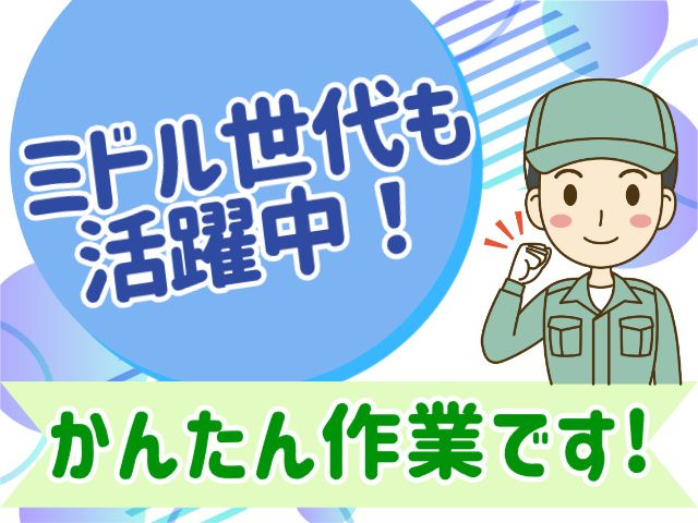 職種/仕事内容 | 仕事内容 使うのは体だけ!かんたん仕分け作業です! 難しい事を考えずに適度に体を 動かしながら働きたい方は特におススメ! 20代~55歳くらいまでの男性活躍中! <仕事内容> 倉庫内で段ボールに入った食品を ケースごとに仕分けするお仕事です。 ケース重量は重いものでも5kg前後です。 ほんの少しだけ10kg程度もあります。 覚える事がかなり少ないので すぐに慣れる事ができます。 <オススメポイント> ・職場見学してから決めてOK! ・髪色・髪型自由 ・体を使ったパート、アルバイトの お仕事を お探しの方にピッタリ! ・服装自由 ・簡単な単純作業です ・正社員登用有 ・未経験OK ・休憩室有 ・喫煙所有 ・マイカー・バイク・自転車通勤可 ・フルタイムでしっかりシフトに入れます ・40代・50代ミドル世代活躍中! <未経験OK> 倉庫作業や仕分け・ピッキング作業が 未経験の方でも安心して働ける 軽作業のお仕事です。 かんたん作業のお仕事にお探しの方! ご応募をお待ちしております。 |