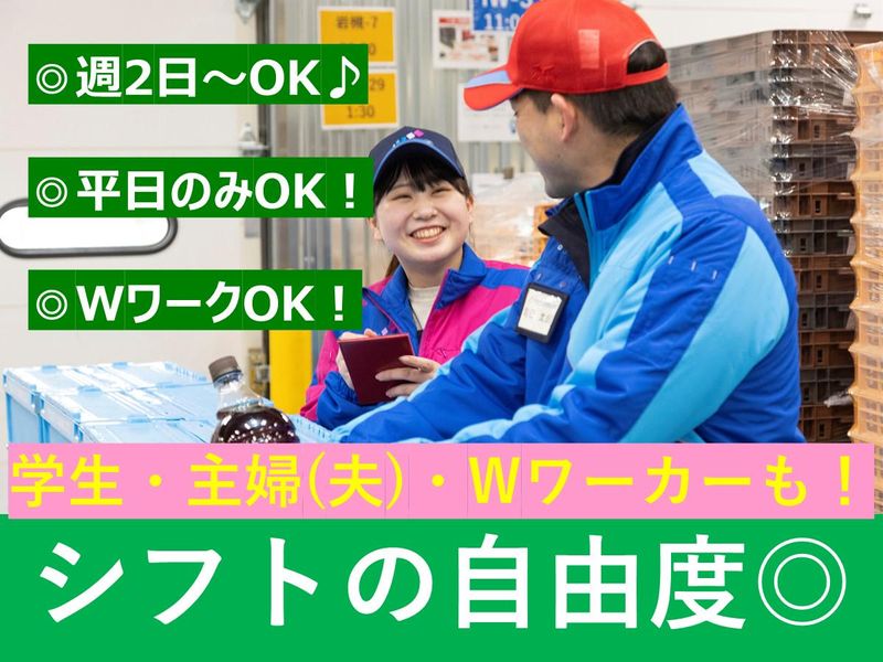 職種/仕事内容 | 仕事内容 / ルーチンワークで覚えやすい仕事! \ ペットボトル飲料のケース商品を指示通りに仕分けるだけの簡単な軽作業をお任せします! 基本的には同じモノなのでとっても簡単。 20~30代の男性活躍中です☆ ///////////////// ■日勤のみ!選べるシフト! 週2日~勤務OK!10時開始で朝もゆっくり! 「朝早いのが苦手…」 「授業やサークルと両立させたい…」 「副業・Wワークと掛け持ちしたい…」 といった方でも安心です◎ 【例えばこんな働き方が…】 *Wワークをしながら *朝ゆっくり起きてから *学校とバイトをうまく両立 *家族や友人と予定を合わせやすい *生活リズムを保ちつつ健康的に働ける シフトは自己申告制で日数・曜日は自由◎ 高校生・大学生、またはシングルマザーの方も活躍中です。 久しぶりの職場復帰をしたい方など皆さんが働きやすい環境を整えています。 ///////////////// 【アピールポイント】 *短時間勤務OK!選べるシフト! *食品物流を支える安定企業! *男性・Wワーカーなど多数活躍中! *日勤のみで月収12万円以上可! *コツコツ作業が好きな方に! ///////////////// 【仕事内容】 大手コンビニエンスストア商品の仕分け・ピッキング作業をお任せします。お仕事内容は軽作業なので安心です! 基本的にはデータを見ながら仕分け作業をして頂くだけでOK! 【大手ならではの厚待遇あり】 パート・アルバイトの方も同じように「賞与年2回」支給し、誕生日にはギフト券をプレゼントするなど、雇用形態関係なく当社ならではの厚待遇をご用意しています! 【食品物流を支える安定企業】 毎日500万人の食生活を支えるために、全国に45拠点※を展開しています。生活に欠かせない「食」にかかわっているからこそ、景気の影響を受けにくく業績は好調を維持。安定した経営基盤を築いています! ※2024年3月末現在 【雇用形態】 パート・アルバイト |
