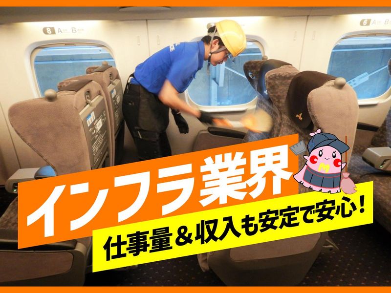 職種/仕事内容 | 仕事内容 ――【新幹線】のウラ側を支える! ――インフラで安定!JR東海グループ! 普段はこんなに近くで見られない! 新幹線基地で、新幹線に大接近して 車両内をキレイにするお仕事です! 若手育成中のJR東海グループで 正社員も目指せます! <お電話は052-411-2407まで!> _/_/_/_/_/_/_/_/_/_/_/_/_/_/_/_/ ■夜の静かな時間帯で接客いらず! ■初心者でいい!未経験スタート多数! ■仮眠室やシャワールーム 完備! ■20代~40代の幅広い男女活躍中! ■正社員登用のチャンスあり! ■勤続年数で定期的に給与UP! ■月9~10日休みで年間休日115日! ■賞与も年2回!安心&安定企業! ■家族手当もしっかり支給◎ ー ▶▶▶他とは違う! JRグループならではの「清掃」だから 安定したシフト&仕事量=安定収入! 【夜勤専属】 新幹線の車両清掃スタッフです。 掃除機やモップ・クロスでの作業です。 ※副業・兼業・掛け持ち不可※ 拭く・歩く…でしっかり体を使う作業◎ 重いものを持つ・運ぶというような 力作業はありませんが、 例えば、床や窓を拭く 力を使うシーンはあるお仕事。 その分キレイになったときの ”気持ち良さ”があるのもポイントです。 自分の持ち場は一人で担当しますが、 それぞれがテキパキと進めていく ”チームプレー”でもあるため、 皆でやりきる達成感が味わえますよ。 【入社後は丁寧なOJTあり】 最初は日勤勤務からスタート! 机上学習&模擬体験を実施します。 研修センターで「清掃の基本」を 学ぶ時間などもありますよ。 その後は、実際に夜勤でOJT研修! 教育担当がペアになり、 一緒に作業しながら教えていきます。 慣れたら仕事の幅を広げていきましょう。 【JRグループで安定収入!】ー 月収例23万7077円+交通費支給(規定) 契約社員でも、嬉しい賞与2回あり! 年収例320万円+交通費で安定収入 【勤務1年以上で正社員登用も可能!】 勤務1年以上になると、 正社員登用試験に挑戦できます。 社内試験を経て、晴れて正社員デビュー! ぜひ長く働いてほしいと思っていますので 試験に向けてしっかりサポートしますね。 ________________ ★★スタッフの推しの「声」!★★  ̄ ̄ ̄ ̄ ̄ ̄ ̄ ̄ ̄ ̄ ̄ ̄ ̄ ̄ ̄ ̄ 新幹線をホームよりも身近で 見られるレア環境に惹かれて応募。 作業時間が車両ごとに固定のため 仕事の感覚を掴みやすいですね。 あっという間に時間が過ぎて 達成感の大きいお仕事だと思います。 「新幹線好き」はもちろん、 そうでない方も他では味わえない 達成感が味わえるので チャレンジしてみてほしいです! |