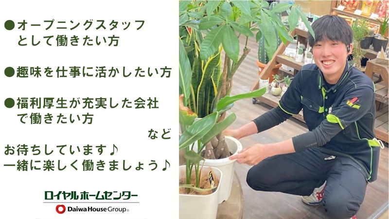 職種/仕事内容 | 仕事内容 \\「働きやすさ」で選ばれています// ~~~~~~~~~~~~~~~~~~~ ✅未経験歓迎!オープニングスタッフ募集 ✅大和ハウスグループの安定企業で安心! ✅家事・育児・学業との両立実績多数! ✅週5日・1日7時間の勤務で安定収入◎ ✅早朝9時までの勤務は時給+150円UP! ✅夕方17時以降・土日祝は時給+100円! ~~~~~~~~~~~~~~~~~~~ ◤ 仕事内容 ◢  ̄ ̄ ̄ ̄ ̄ ̄ ̄ ロイヤルホームセンター店内での、 荷受け・検品(入荷商品のチェック) を担当していただきます! 【具体的には】 ◇荷受け(入荷対応) ・搬入口で届いた商品の受け取り ・伝票/納品書を確認し、受け取り処理 ◇検品(数量・状態チェック) ・商品数が合っているかの確認 ・破損や汚れがないかの確認 ◇搬送・仕分け(バックヤード作業) ・商品を売場/バックヤードごとに仕分け ・台車などを使って所定の場所へ運搬 ・必要に応じて売場への補充サポート ※マニュアル完備&先輩が丁寧に フォローするので未経験でも安心です! ※状況により、売場整理や品出しなどの サポートをお願いする場合があります。 ~~~~~~~~~~~~~~~~~~~ ◤ 働きやすさ&続けやすさ ◢  ̄ ̄ ̄ ̄ ̄ ̄ ̄ ̄ ̄ ̄ ̄ ̄ ̄ ̄ ロイヤルホームセンターは、 生活に合わせて無理なく働ける環境! 勤務は6:30~20:15の間でのシフト制。 翌月の希望休も4日程度出せるため、 「この日は用事がある」「学校行事がある」 など、予定を立てながら働けます。 週5日・1日7時間の勤務で、 安定収入を重視したい方にもピッタリ! さらに、 時間帯・曜日で時給が上がる仕組みも 嬉しいポイント!早朝~9時は+150円、 夕方17時以降や土日祝は+100円と、 同じ時間働くなら効率よく収入UPも可能。 そして今回は、 これからオープンする新店のオープニング! みんな同じスタートラインで馴染みやすく、 研修や仕事の流れも一緒に覚えていけます。 新しいお店を作っていくワクワク感も、 オープニングならではの魅力です♪ ~~~~~~~~~~~~~~~~~~~ |