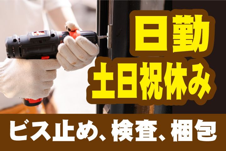 職種/仕事内容 | 仕事内容 日勤&土日祝休み&年間休日127日 「未経験者歓迎」コツコツモクモク作業! 軽作業メインだから作業が覚えやすくて安心 現在、20代・30代の男女活躍中 \おすすめポイント/ ◎残業ほぼなしで生活リズムが整いやい ◎繰り返し作業メインで覚えやすい ◎長期連休のある月でも毎月固定の月給制 -◆-◇-◆-◇-◆-◇-◆-◇-◆-◇-◆- 【主なお仕事内容】 〇部品を運ぶ 〇ビス止め※電動ドライバー使用 〇外観チェック 〇梱包 住宅用天井盤をつくる製造工場です。 組立から検査、梱包などをお任せ。 基本のものづくりを覚えていただけます! -◇-◆-◇-◆-◇-◆-◇-◆-◇-◆-◇- \こんな方におすすめ/ ◆家族や友人と予定を合わせたい方 ◆未経験から製造にチャレンジしたい方 ◆製造業の正社員・アルバイト・パート・ 派遣の経験を活かしたい方 ◆ハローワークでもお仕事をお探し中の方 求人内容の詳細については 面談時にご説明させていただきます。 |