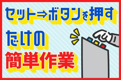 職種/仕事内容 | 仕事内容 できたばかりの超キレイな施設で働けます★ / 一人の現場!黙々できるルーティンワーク 作業は鉛筆削りに鉛筆を入れるイメージ! \ ▼ストロー状の製品をギュイーンと 機械の決まった位置に差し込むだけ >>この業務のくりかえしです◎ >>後は機械にお任せでOK! ▼製品の大きさは・・・ 片手で持てるサイズ感から 大きくて長いモノまで様々♪ \ オススメPOINT / ー *未経験からのチャレンジ大歓迎 *20代~40歳までの男性活躍中! *土日祝休みで平日のみの勤務! *新設されたばかりの綺麗な環境 *マイカー通勤可!駐車場は無料 ー 紹介キャンペーンを実施中 当社で働いているお友達からの紹介で 登録にきてもらったら クオカードを3000円分プレゼント! (紹介してくれた方には給与に3000円プレゼント) 就業が決まったら、2ヶ月後に 紹介者には5万円プレゼント! ご友人には3万円プレゼント! 11月末までの期間限定!! ※支給規定あり |