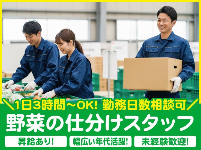 野菜の仕分け作業員募集中! 重量物あり!午前2時~8時の間で3時間~! 勤務日数・曜日はご相談下さい