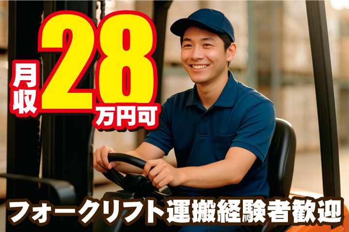 ★空調完備で季節に関係なく快適作業 ★フォークリフト運搬経験者歓迎 ★日勤でも月収28万円の安定収入