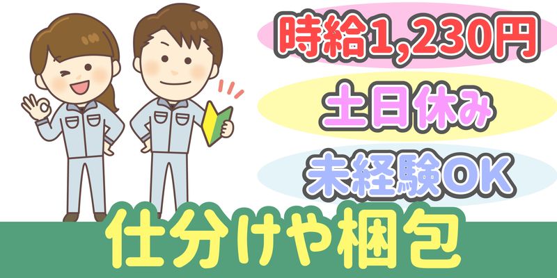 職種/仕事内容 | 仕事内容 印刷物などの仕分けのオシゴト ほかにも、梱包や結束作業などもお願いします 慣れてきたら、機械オペレーターの補助業務も! イチから丁寧に教えてもらえるので未経験でも安心です 出張面接いたします!就業前の職場見学OK! ご応募お待ちしております!! 25歳~40代前半の男女活躍中! ・就業場所は、児玉工業団地 近郊 オススメpoint ・土日休み ・ジーンズでの就業OK ・午後に小休憩あり お仕事の効率アップ ・食堂利用OK ・ロッカーあり ・駐車場完備 らくらくマイカー通勤 ・未経験者 OK ・基本的なPC操作ができる方 ・土日休みが良い方 ・日勤のお仕事ご希望の方 ・長期で働きたい方 ・残業少なめでプライベート充実させたい方 ・1月あたり平均残業時間10h 【こんな経験活かせます!】 パート、アルバイト、契約社員 雇用形態問わず、下記の経験ある方は活かせます! ・倉庫内(構内)作業 ・工場 ・製造 ・梱包 ・マシンオペレーター ・機械操作 ・ボタン操作 ※もちろん必須ではありません! まずはお気軽にご応募ください ///////////////////////////////////////// (WEBでご応募の場合) お電話番号を記入していただくと ご案内がスムーズです。 ///////////////////////////////////////// |