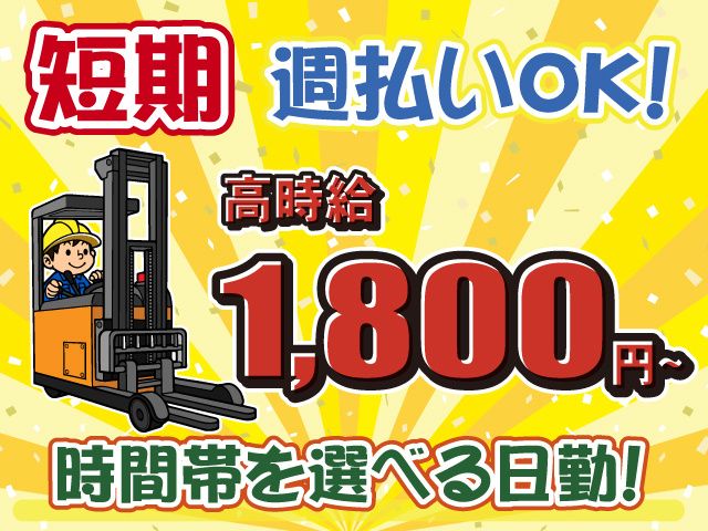 2~3ヶ月の短期!高時給!チルドセンター内でのピッキングや入出庫作業/時間帯を選べる/週払いOK