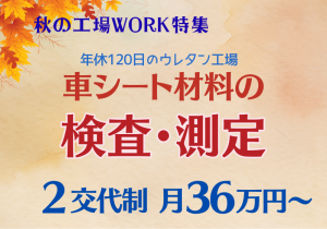 職種/仕事内容 | 募集背景 ★業績好調につき増員募集★ 仕事内容 自動車シートのクッション素材【ウレタン】の検査・測定 入社後 工場でどんな製品を製造しているか、性質や特徴を学ぶ時間を設けています。 実際に仕上げの工程に入って、製造時に出来てしまうでっぱり「バリ」を取り除く作業をしながら製品の知識・理解を深めていきます。 製造~仕上げ工程で製品について学んだら、いよいよ検査の工程です。 検査・測定にはウレタンの成型後、仕上げ後、修理の後、と種類があります。 ・目で見て仕上がりをチェックする目視検査 ・器具を使っての規格適合検査 など。 チームで各工程を担当します。 工程も検査の種類も複数ありますが、どれも特殊なスキルはいりません。 こんな方におススメです ・夜勤アリで高収入を目指す方 ・未経験からできるお仕事をお探しの方 ・車好きな方 ・間違いさがしが得意な方 ・重たくない&キツくない作業系をお探しの方 |