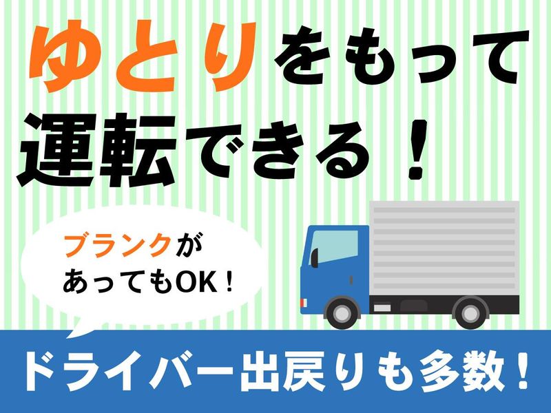 対象となる方 | 求めている人材 ✅必須 要中型免許(旧普通免許でもOK) 未経験者歓迎!経験者歓迎!ブランク歓迎! 当社の半数以上はドライバー未経験者。 コースさえ覚えてしまえば、長く働ける環境です。 配送ドライバーや送迎ドライバーなど、トラック経験者も気軽にお問い合わせください。 【こんな方に】 ・プライベートを充実させたい ・ちゃんとお休みが欲しい ・正社員で安定した収入が欲しい |