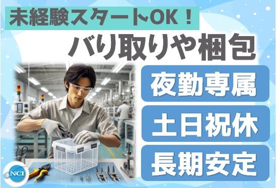 PR・職場情報 =====ここがポイント===== ■カンタン!軽作業!! ■製造未経験者も大歓迎! ■長期安定!即日スタートOK! ■20~40代活躍中!! ■夜勤固定で稼げるお仕事! ===================== ▼安心のフォロー体制▼ 就業してからも当社営業スタッフがしっかりフォローしますので、派遣が初めての方や未経験のお仕事に不安のある方も安心してお勤めいただけます!! ◎お仕事内容のお問合せだけでもお気軽にどうぞ!! 求人の特徴 【お仕事開始までの流れ】 STEP1: 営業社員との面談、登録 STEP2: 職場見学 STEP3: 入社書類取り交わし STEP4: お仕事開始 ※平日18時以降の面談やオンライン対応も可能です。ご希望の方は遠慮なくお問い合わせください! - この求人以外に派遣・バイト・アルバイト・パートや軽作業、製造、事務 のお仕事に興味のある方、短時間、短期・長期歓迎です。 長岡市、小千谷市、見附市、三条市、燕市、柏崎市でお仕事をお探しの方、 未経験、ハローワークでお探しの方もお問い合わせください。 - 〒940-2026 新潟県長岡市堺東町37-1 高野不動産堺ビル205 株式会社 NCI 長岡支店 TEL:0258-84-7800 FAX:0258-84-7814 freedial:0120-78-2345 (※お電話にてご応募の際は「求人サイトを見て」とお伝えください!) 一般労働者派遣事業許可番号:派07-300732 職業紹介事業許可番号:07-ユ-300310