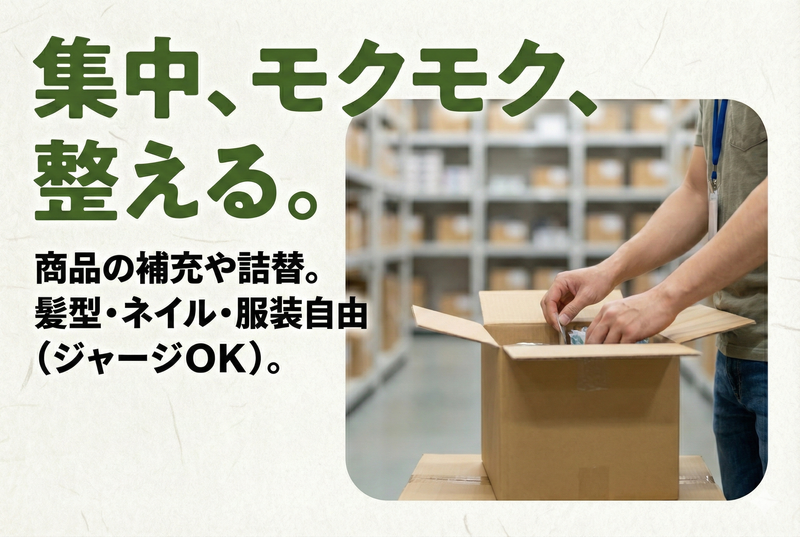 職種/仕事内容 | 仕事内容 【 早起きを活かしてサクッと働けます 】 ✨5:00~11:00(9:00)の朝活スタッフ募集 ✨週1日~OK! ✨プライベートとムリなく両立 ✨早朝手当あり(時給240円UP) ✨未経験OK!軽作業デビュー歓迎 ✨Wワーク/扶養内勤務も大歓迎 ―――――――――――――――――――― ● お仕事について ―――――――――――――――――――― 関西エリアを中心に、 安心・安全な食材を届ける 「コープ自然派」の物流を支えるお仕事です。 野菜・果物・牛乳など、 組合員さんのもとへ届く商品の 出荷準備を行っています! ―――――――――――――――――――― ● 具体的なお仕事内容 ―――――――――――――――――――― ✅棚への商品補充(箱を置くだけ) ✅箱の開梱/詰め替え ✅整理/積み重ね作業 など ▼作業はとってもシンプル 箱を切る ↓ 別の箱に入れる ↓ 積む 覚えやすい軽作業ばかりなので、 未経験の方もすぐ慣れます◎ ―――――――――――――――――――― ● 短時間だから続けやすい! ―――――――――――――――――――― 勤務時間は【朝5時~11時】 午後は自由時間✨ ・家事 ・趣味 ・別のお仕事 ぜんぶ両立できます! 週1日~OKなので、 ライフスタイルに合わせて働けます◎ ※シフト相談OK ―――――――――――――――――――― ● 働きやすさPOINT ―――――――――――――――――――― ✔ 週1日~相談OK(※金曜定休) ✔ 車・バイク通勤OK/転勤なし ✔ 学歴・経験一切不問 ✔ 日本語での会話ができればOK ✔ 主婦(夫)・フリーター活躍中 |