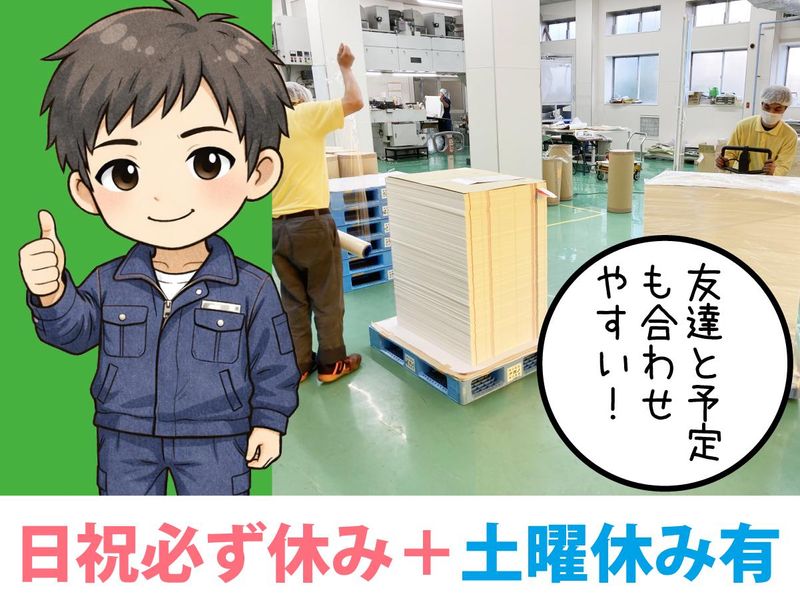 職種/仕事内容 | 仕事内容 \未経験でも月給24万以上の正社員/ 力自慢・ガッツがある方は注目♪ 印刷物とピカピカのフィルムを、機械で ピタっと貼り付けたりするお仕事。 ▼▼▼ ◎力仕事があるため、男性多数活躍中◎ ❖1年目月収29万・2年目は30万円超え❖ ―・―・―・―・―・―・―・―・―・―・―・―・― 毎年平均4%昇給&残業時は食事手当も◎ 10年先も20年先も、安定して働きたい 何かしらの工場作業経験者はぜひ! ─────────────────── ………⭐POINTをサクっと紹介⭐……… ─────────────────── ✅安心の日勤のみ!夜勤はありません ✅日祝は必ず休み+土曜もお休みあり ✅未経験×簡単作業で月給24万スタート ✅毎年平均4%昇給+賞与も毎年支給◎ ▶1年目月収例/29万円(残業手当込み) ▶2年目月収例/30万5千円(残業手当込み) ✅残業食事手当800円も支給 ▶残業時間は月平均27時間程度 ✅冷暖房完備の快適な工場 ✅車通勤の場合は交通費一律5000円 交通機関利用の場合は全額支給 ※応募者多数の場合、募集を締め切る 場合があります。お早めにご応募下さい。 ────────────────── ………⭐お仕事内容について⭐……… ────────────────── 印刷された紙やシールに “ピカピカのフィルム”を貼るお仕事です。 ▼▼▼ つくるものは、電車や本屋でよく見かける 「光沢感のある広告や雑誌」です♪ …【仕事内容は大きく分けて3つ】… ①材料の運搬とセット ────────────────── ▨紙やフィルムを台車で機械へ運ぶ ▨機械に材料をセットする ▶機械の操作はボタンを押すだけ◎ ②貼り合わせ作業 ────────────────── ▨フィルムと紙が機械でペタっと貼られる ▨機械から出てきた紙をパレットに積む ▶手先の器用さや専門技術は必要なし! ③片付けと掃除 ────────────────── ▨作業後の機械を軽く清掃する ▶慣れれば1人でもスイスイ作業できます♪ ────────────────── …⭐安心して働ける待遇がズラリ⭐… ────────────────── 「社内でのアピール」よりも「コツコツ継続」 が評価される制度です。 社員の年次昇給額は平均4%。 賞与は2ヶ月分(3年目以降)支給されるので 安心して長く働けますよ♪ ―・―・―・―・―・―・―・―・―・―・―・―・―・ ▨1年目月収例29万円(月給24万+手当) ▨2年目月収例30万5千円(月給25万+手当) ―・―・―・―・―・―・―・―・―・―・―・―・―・ 残業食事手当800円や、資格取得支援制度が あるのも嬉しいPOINTですね。 ┏━━━━━━━━━━━━┓ ❖三栄産業ってこんな会社 ┗━━━━━━━━━━━━┛ 昭和52年に創業し、安定経営を続ける 野田市の隠れた実力派企業。 シールやおもちゃ、印刷物全般の 光沢加工ラミネートに強みを持つ コツコツ派の会社です。 |
