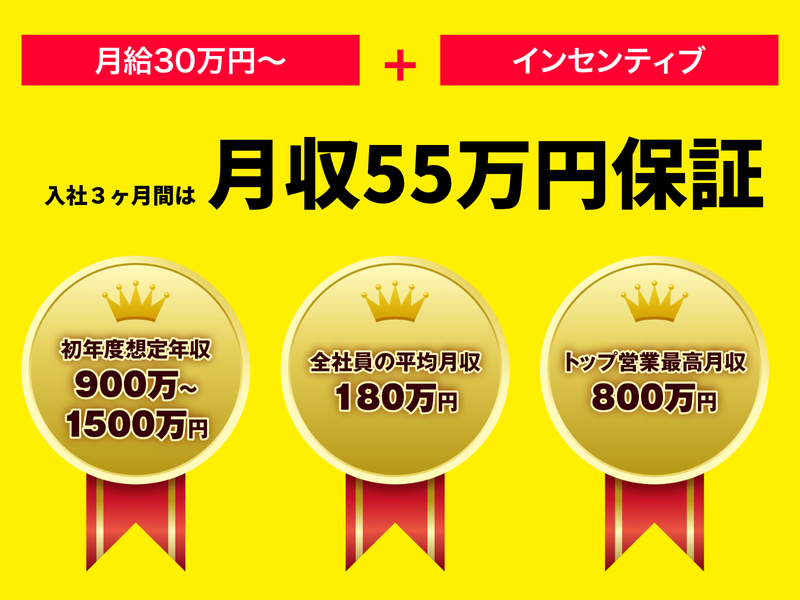 入社後3ヶ月間は月収55万円保証!平均月収180万円!