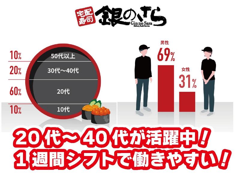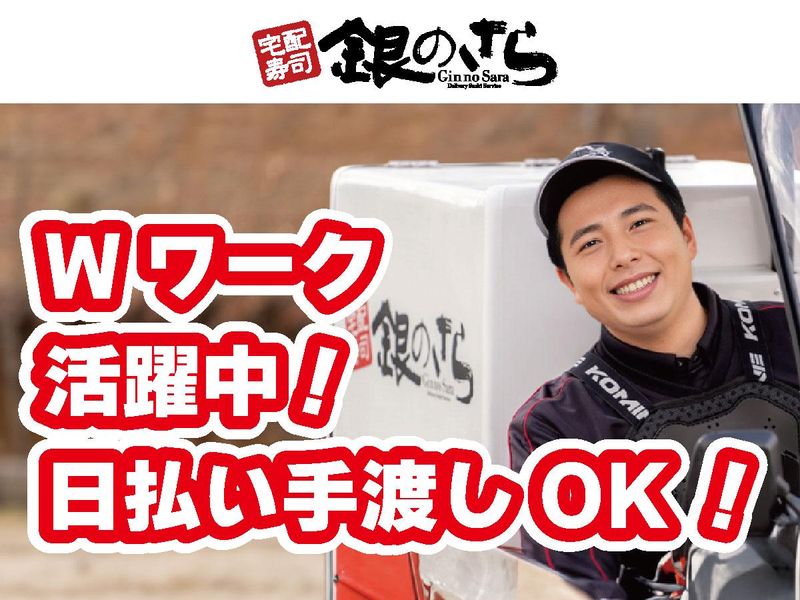 職種/仕事内容 | 仕事内容 お客様へお寿司をお届けするお仕事です。 原付バイクまたは普通自動車免許をお持ちの方であれば、どなたでも応募可能です! 未経験の方でも丁寧に指導しますのでご安心ください。 難しい作業はありませんので、すぐに慣れていただけます! -— ●勤務時間 17:00~22:00 -— ●給与例 月収7万6800円=時給1280円×実働5時間×週3回×4週間 ※理想の働き方を教えてください!些細なことでもご相談ください! -— 配達範囲は店舗から3キロ圏内と、比較的狭い範囲なので、安心してお仕事できますよ♪ さらに、雨天時でも快適な屋根付き3輪バイクを使用!風雨を気にせず、安全に配達できます◎ 一人で作業することが多いので、人見知りな方や、マイペースに働きたい方にもピッタリ! 自分のペースで仕事を進められます♪ 勤務時間一週間の希望シフト制! あなたの希望を最大限に考慮します!シフトの相談にも柔軟に対応しますので、 長く安心して働ける環境です♪ -— 高校生、大学生も多数活躍中で、アットホームな雰囲気です! 困ったことがあれば、いつでも相談できる頼れる仲間がいますよ♪ 休憩時間には店舗に完備されているWi-Fiを自由に利用できます! スマホをいじったり、ちょっと休憩したり、自分の時間を楽しめます☆ インターネットや電話での注文受付、寿司の調理、盛り付けなども、 丁寧に指導しますので、未経験の方でも安心してスタートできます! -— 充実の研修制度があるので、未経験の方も安心! 先輩スタッフが丁寧に指導しますので、安心してスキルアップできますよ☆ もちろん、昇給や賞与などの待遇も充実!頑張りをしっかり評価する制度です♪ 長く安心して働ける環境です♪ 働きやすさ抜群の職場です!たくさんのご応募お待ちしております! |