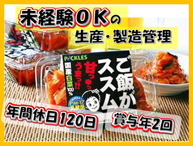 職種/仕事内容 | 仕事内容 『ご飯がススム』シリーズをはじめとした 漬物商品の食品製造管理をお任せします。 大手スーパーの販促の影響などで 発注量は常に増減があります。 どんな時でも商品を安定供給するため、 製造管理スタッフは製造ラインが きちんと稼働するように、 人員や材料、ラインの設計などを整える ポジションです。 まずは、「商品がどんな風に作られ、 食卓に届けられるのか」を実務を通して 学ぶことからスタートしましょう。 < 具体的なお仕事内容 > ■野菜などの発注  ̄ ̄ ̄ ̄ ̄ ̄ ̄ ̄ ̄ ̄ ̄ ̄ ̄ ̄ ̄ ̄ ̄ ̄ 野菜・容器・ラベルの在庫状況を確認、 システム上で発注を行ないます。 販促に合わせた発注計画の立案や、 野菜の単価交渉などをお願いする事もあります。 ■製造スタッフの人員調整  ̄ ̄ ̄ ̄ ̄ ̄ ̄ ̄ ̄ ̄ ̄ ̄ ̄ ̄ ̄ ̄ ̄ ̄ 安定的に製造ラインを動かせる人員を整えます。 スタッフの時間調整や出勤依頼を行います。 ■製造機械の簡単なメンテナンス  ̄ ̄ ̄ ̄ ̄ ̄ ̄ ̄ ̄ ̄ ̄ ̄ ̄ ̄ ̄ ̄ ̄ ̄ 機械の動作が悪い時にネジの緩みなどの 軽微なメンテナンス作業を行います。 自分で直せない場合は業者にお任せします。 ■製造ラインの切り替え計画  ̄ ̄ ̄ ̄ ̄ ̄ ̄ ̄ ̄ ̄ ̄ ̄ ̄ ̄ ̄ ̄ ̄ ̄ 季節に合わせた漬物を生産するための 計画を立てます。 例えば「なす」がメインの製造ラインを 「きゅうり」に変更するなど。 機械やその配置の変更を工場長と一緒に決めていきます。 【 当社について 】 当社は業界シェアトップの 浅漬け・漬物メーカーです。 「ご飯がススムキムチ」をはじめ 国産野菜を使用した浅漬け、漬物の製造や 販売事業を全国のスーパー、生協、 コンビニエンスストアに展開しています。 上場企業グループの安定した基盤で、 長く安心して活躍できる環境があります。 【 ピックルスのサステナビリティ経営 】 ピックルスは、環境への配慮、食の安全、働きやすい職場作りを経営方針に定め、この経営方針の実現に向けて、 「お客様に対する責任」 「株主・投資家に対する責任」 「社会貢献活動」 「環境保全活動」「地域社会活動」「コンプライアンス」「従業員に対する責任」という7つの責任を果たすことが、環境問題や社会問題を解決すると同時に企業価値の向上に繋がっていくものと考え、サステナビリティ経営に取り組んでいます。 詳しくは弊社ホームページをご覧ください。 ピックルスが掲げる”SDGs”への取り組み 3.すべての人に健康と福祉を 4.質の高い教育をみんなに 5.ジェンダー平等を実現しよう 6.安全な水とトイレを世界中に 8.働きがいも経済成長も 12.つくる責任つかう責任 13.気候変動に具体的な対策を 14.海の豊かさを守ろう 15.陸の豊かさも守ろう 17.パートナーシップで目標を達成しよう |