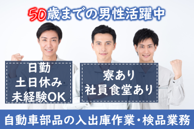 職種/仕事内容 | 仕事内容 \週休2日で【日勤固定】【寮費無料】のお仕事!/時給1200円!未経験者大歓迎!*慣れるまで社員の方が優しくサポート* <仕事内容> 【自動車部品の入出庫作業・検品作業】 ◆箱から部品を取り出し確認・納品書を確認しながら品名と部品のチェック。 ・所定の数量が決まっていますので、その数と差異がないかチェック、報告します。 ◆確認した部品をハンドリフトを使用して指定の位置まで運んでいただきます。 ※積み下ろし等で重量物を取り扱います(15kg未満) ◆空箱の整備部品を取り出した後、空箱となりますので、所定の場所まで運んでいただきます。 ※以上のお仕事は状況によりすべて一人で行うこともあれば専属で行うこともあります。 ◆数量確認をした後に簡単なPC入力をお願いします。 ◆その他の時間は作業場の掃除をしていただきます。 立ち作業でのお仕事です。 《職場環境》 男性が多い職場です。 CDP派遣スタッフ在籍中! 冷暖房完備♪ 電子タバコのみ指定の場所で利用可能 ロッカー有り|休憩室完備|売店有り アピールポイント <仕事内容> 【自動車部品の入出庫作業・検品作業】 ◆箱から部品を取り出し確認・納品書を確認しながら品名と部品のチェック。 ・所定の数量が決まっていますので、その数と差異がないかチェック、報告します。 ◆確認した部品をハンドリフトを使用して指定の位置まで運んでいただきます。 ※積み下ろし等で重量物を取り扱います(15kg未満) ◆空箱の整備部品を取り出した後、空箱となりますので、所定の場所まで運んでいただきます。 ※以上のお仕事は状況によりすべて一人で行うこともあれば専属で行うこともあります。 ◆数量確認をした後に簡単なPC入力をお願いします。 ◆その他の時間は作業場の掃除をしていただきます。 立ち作業でのお仕事です。 《職場環境》 男性が多い職場です。 CDP派遣スタッフ在籍中! 冷暖房完備♪ 電子タバコのみ指定の場所で利用可能 ロッカー有り|休憩室完備|売店有り \充実した福利厚生/ ◎社会保険・雇用保険完備 ◎有給休暇有(6ヶ月経過後、10日付与)※規定あり ◎残業手当 ◎交通費支給(規定内) ◎確定拠出年金制度 ◎週払い制度(週3回対応) ◎お友達推薦制度あり(規定有り) ※1名につき3万円~10万円臨時給与として支給 ◎寮あり(1R) ◎寮費無料 ◎車(マイカー)・バイク通勤OK(無料駐車場あり) ◎制服貸与 ◎社員食堂あり ◎食事持参可 ◎ロッカー・休憩室利用可 ◎福利厚生プログラム (宿泊、グルメ、ショッピングなど大幅割引が受けられる10万アイテムのメニューがあります。) |