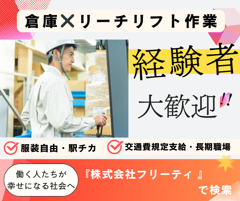 職種/仕事内容 | 仕事内容 ✨リーチリフト経験者 募集します✨ ✅倉庫内で、リーチリフトを使って商品の入出庫やピッキング作業をお任せします! ✅扱う物は、ドラッグストアの商品全般(飲料・お菓子・ラーメンなど)です。 ★服装:自由です♪ ★アクセス:駅近で通勤らくらく♪ ★環境:きれいな広々とした倉庫でのお仕事です♪ |