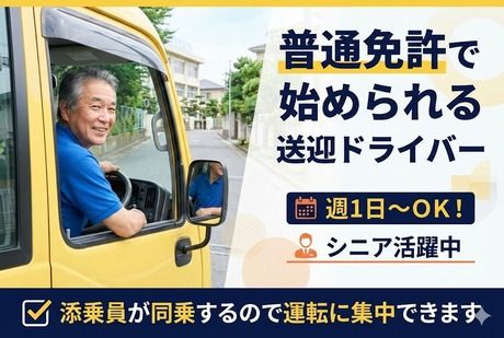 <60代の採用実績あり!>週1日~OK!普通免許があればOK!添乗員が同乗するので運転に集中できます◎