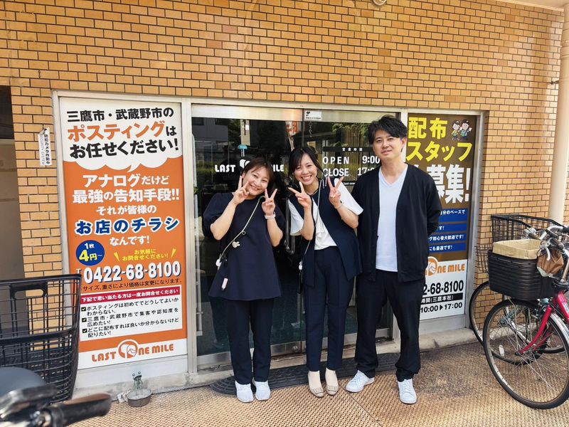 職種/仕事内容 | 仕事内容 不動産、飲食業、塾などのチラシを バイク・自転車・徒歩で家庭のポストに投函するお仕事。 難しい業務はなし! 期日までに配布できればok ⏩空いた時間の2~3時間で勤務可能 ◥◣選べる!チラシの受け取り方◢◤ ①営業所orロッカーに【取りに来る】  ̄ ̄ ̄ ̄ ̄ ̄ ̄ ̄ ̄ ̄ ̄ ̄ ̄ ̄ ̄ ̄ ̄ ̄ 営業所は、三鷹から徒歩8分。 営業所でお茶してからチラシ配布する方も多いアットホームな営業所です。 営業時間外にチラシを受け取りたい方は 屋外ロッカーでの受け取りも可能です! 仕事帰りの方は夜にロッカー受け取りしています。 こっちの方が少し稼げます♪ ②チラシは【自宅に配送】  ̄ ̄ ̄ ̄ ̄ ̄ ̄ ̄ ̄ ̄ ̄ ̄ ̄ ̄ ̄ ̄ ̄ ̄ ご自宅にチラシをお届けします。 家にチラシが届くので便利♪ ⏩未経験でも問題なし! 社員や先輩がお教えします ⏩いろんな働き方が可能! 一人でスキマ時間にモクモク働きたい方に大人気! ■子どもが学校行っている間の10-14時 ■身体を動かしたいリタイアした方10-16時 ■日中は他の仕事するWワークさん19-24時 ■午後からゆっくりしたい方5-12時 |
