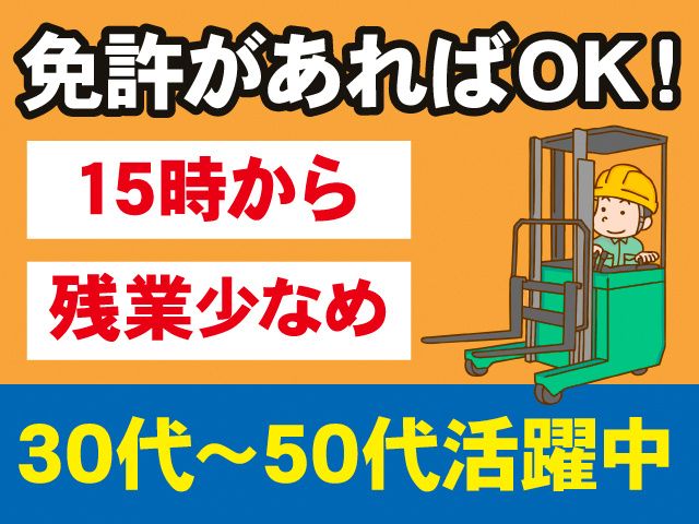 フォークリフト免許があればOK/夕勤/残業ほぼなし/研修あり/防寒着貸与/30代~50代の男性活躍中