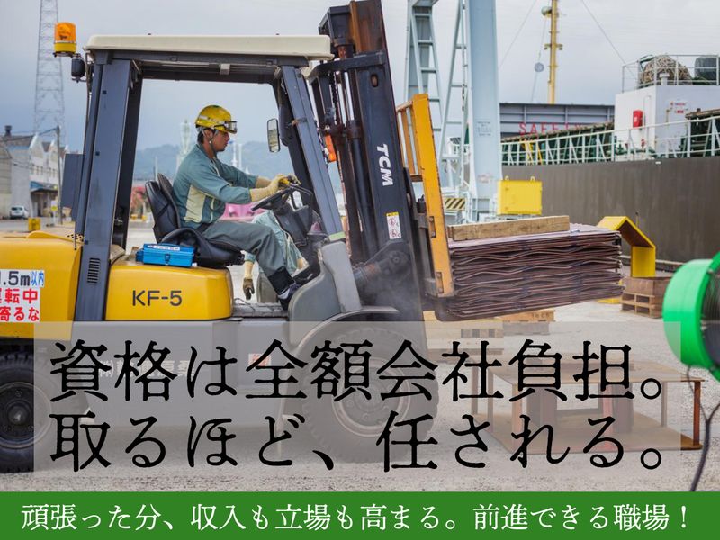 職種/仕事内容 | 仕事内容 +++- ■この仕事、 実は“一生モノ”です。 -+++ 港で船で届く銅の原料を積み、 下ろし、次へつなぐ。 派手さはありませんが、 その積み重ねこそ、日本の銅産業を 止めずに動かす力に他なりません。 ここにはなくならない仕事、 評価され続ける技術があります。 事実、桑原運輸は、 愛媛・新居浜の港で100年以上、 社会に必要とされ、 大きな安定収入を生み出し続けてきました。 この先もなくなる⼼配はありません。 未経験者を育てる前提でお迎えします。 +++- ■仕事内容 港湾荷役作業員とは -+++ 港に届いた原料を、 フォークリフトや様々な重機、 玉掛けという技術を使って動かし、 安全に次の工程へつなぐ仕事です。 ▼ 入社後の流れ まずは合図・補助・周囲確認など 簡単な作業 ↓ 先輩と一緒にチームで動く ↓ 慣れてくれば、資格取得・操作に挑戦! ↓ 「見て覚えろ」ではなく、 一つずつ段階的にお教えします。 資格は、会社負担で取得可能。 増えるほど、任される仕事も 給料も上がります。 軽い荷物を運ぶフォークリフトに始まり 何トンもの大きな荷物をダイナミックに 動かす重機まで様々な資格があります。 「手に職がついていく実感」を 早い段階から味わえる環境です。 +++- ■ 現場が“花形” -+++ 桑原運輸では、 港で働く作業員こそが主役だと 本気で考えています。 実際に社内報では現場作業員の インタビューを定期掲載。 仕事の奥深さ、難しさを語り、 人となりを紹介する コーナーもあります。 社内向けYouTubeでは、 仕事の工夫や想いなどを 別の部署の人間が見ても 「頑張ってくれてるんだなぁ…」と 感じられるコンテンツを公開。 本気で現場作業者1人ひとりの がんばりが注目され、 リスペクトされる風土を創る 努力を企業をあげて進めています。 +++- ■長く働くための現場づくり -+++ ✅実働7時間45分 ✅月平均残業20時間以内 ✅シフト制で無理な連勤なし ✅残業食事手当 ✅残業・深夜・休日手当の充実 ✅有給・育休・介護休暇 実績あり 体も動かす仕事ならではの 疲労に考慮。しっかり休み、 長く続けられる 体制づくりを進めてきました! +++- ■次の100年に続く強さを 共につくろう! -+++ 産業に銅が使われる限り 私たちの港の仕事は、 時代が変われど なくなることはありません。 だからといってそれに甘んじず 現場で働く仲間の負担を軽くし続け、 現代のITを駆使した管理方法で 近代的な経営体制を築くこと。 そして次の100年も続く企業体制に 磨き上げることを目指しています。 きっとあなたがイメージする 「現場仕事」とは違う世界が 既に出来上がりつつあると 自負しています。 私たちと共にそんな環境で 思い切り、働いてみませんか! |