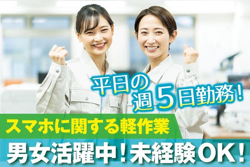 職種/仕事内容 | 仕事内容 <週4日~ok!高時給でしっかり稼げます!週払いok!> ■■■■■■■■■■■■■■■■■■■■■ ■ スマホの軽作業♪受付、組立や検査等 ■ ■■■■■■■■■■■■■■■■■■■■■ 未経験から始められる、かんたん軽作業のお仕事です! スマホのキズ確認や、充電ケーブルつないでボタンをポチッ! プラモデル感覚でパーツ取付♪ 空調完備&綺麗な工場でのお仕事♪ 落ち着いた雰囲気のワークスペースなので、 手元の作業だけに集中できます。 未経験・ブランクのある方も活躍中! ベテランの先輩やリーダーが あなたをしっかり支えるのでご安心下さい。 その他、困りごとやお休み希望の相談も お気軽にどうぞ◎ ✨ おすすめポイント ✨ ✅日勤のみで夕方前には終了 夜勤が無いから生活リズムが崩れません! ✅車、バイク、公共交通機関 もちろん、自転車通勤もOK! *交通費規定支給 ✅稼ぎたい方必見! 週5日フルタイムで働けます! ✅面接時は履歴書不要! 来社不要のWeb面接も実施中♪ ー ■実際に働くスタッフの声をこっそり! >夜勤あり&シフト制の お仕事をしていたスタッフAさん 転職してよかったことは、 まず生活リズムが安定したことです! これまでは連続した休みは中々取れず、 プライベート全力!という訳には いかなかったのですが、 今では週末にさくっと旅行に行ったり。 遠方のライブに行って推し活をしたり。 自分の大切にしたいことの為に 時間を使う余裕が出来て ほんとうにうれしいです♪ ワークライフバランスばっちり◎ って、このことだなと思います。 自然と仕事へのモチベーションも上がって いいことばっかりです! 社内の人達もみんな優しくて とても関わりやすいので、 無理なく、長く続けたいなと思っています。 ー 少しでも気になった方は是非ご応募下さい◎ |