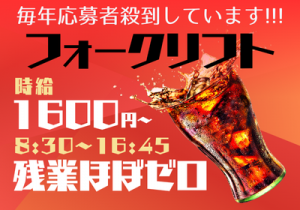 8:30~16:45ほぼ定時退社/フォークリフト免許が必要です/ドリンク飲み放題/年間休日130日