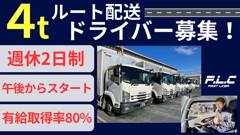 職種/仕事内容 | 仕事内容 地域に根ざし、 創業以来「安全・迅速・確実」をモットーに 成長を続けるファーストライナー株式会社。 今回募集するのは、食品や日用品の 『ルート配送を担当する4tドライバー』 固定ルートでの配送なので、 慣れてしまえばルーティン化しやすく、 未経験の方でも始めやすいお仕事です♪ ■お任せするのは・・・  ̄ ̄ ̄ ̄ ̄ ̄ ̄ ̄ ̄ ̄ ̄ ̄ 茨城県・栃木県エリアの店舗への食品配送。 カゴ台車やリフトを使っての積み下ろしが 中心なので、体への負担が少なく、 力仕事が苦手な方も安心です。 車両はパワーゲート付きで、 運転のしやすさも◎ ■勤務時間は  ̄ ̄ ̄ ̄ ̄ ̄ ̄ 13:30〜翌1:30の間で実働8時間。 夜勤といっても深夜長時間労働ではなく、 生活リズムを整えやすい安定勤務です。 家庭の予定やお子さんの行事にも 柔軟に対応可能◎実際働くスタッフからも 「運動会や学校行事に毎回参加できる」 と好評です♪ ■社員の6割が未経験スタート◎  ̄ ̄ ̄ ̄ ̄ ̄ ̄ ̄ ̄ ̄ ̄ ̄ ̄ ̄ ̄ 入社後は先輩ドライバーが同乗研修で しっかりサポートし、配送ルート・積み方 安全運転のコツまで丁寧に教えます。 資格取得支援制度もあり、 中型・大型免許、ユニック、玉掛けなど へのステップアップも応援♪ 未経験入社から管理職にステップアップ した社員もおり、「運転が好き」から始まる キャリアアップを全力でサポートします! === ファーストライナーでは “車好き”の社員が多く活躍中!! 自社でレーシングチーム 「HELM MOTOR SPORTS」や 民間車検場 「HELM MOTOR SERVICE」を運営し、 レース観戦(ツインクル茂木で年1回招待) イベント参加・自家用車の整備割引 などの特典も充実しています。 |