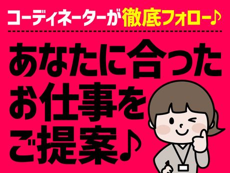 対象となる方 | 資格 未経験ok! 20~30代の男女活躍中◎ 【当社で希望の働き方を叶えよう!】 「短期」「長期」「日勤のみ」「夜勤のみ」「土日祝お休み」「残業ガッツリ」「残業なし」「扶養内」など ご希望に合わせてご紹介できる案件が多数ございます! 【当社で派遣のお仕事始めよう!】 ・当社では初めての就職や転職、派遣デビューをしっかりサポート! 「高収入を目指したい」「未経験でも挑戦してみたい」「経験を活かして働きたい」「日勤のみで家庭と両立したい」 「夜勤でガッツリ稼ぎたい」「スキルアップして仕事の幅を広げたい」「スグに働きたい」などなど ご希望の働き方をお聞かせください!様々な案件を扱っているので、あなたにピッタリなお仕事がきっと見つかりますよ。 来社不要!履歴書不要!電話登録だけでOK!自宅にいながら簡単に始めやすいのもポイントです! ・嬉しい日・週払い制度あり(規定) 毎日・毎週がお給料日に!「急な出費にも助かる!」と好評の日・週払い制度がございます。 月払いでまとめて収入ガッツリGETも可能です! |