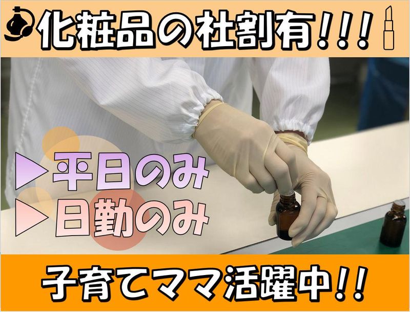 職種/仕事内容 | 仕事内容 *30代~40代の主婦活躍中*・。 家事・育児と両立しながらの勤務可能☆ \ 仕事内容はとってもシンプル!! / 【⭐その1】 化粧品の容器へ化粧品を詰める 【⭐その2】 フタを閉める 【⭐その3】 小箱に詰める \ おすすめPOINT!! / ▶とっても簡単×シンプル作業 ▶未経験からスタートできる! ▶土日祝日休み ▶残業なし \ 当社までのアクセス / 西武線「所沢駅」から車で14分。 「東所沢駅」から車で7分。 「新座駅」から車で19分。 東武東上線「みずほ台駅」から車で20分。 「志木駅」から車で24分。 ▶車・バイク通勤OK! ▶所沢駅から無料送迎バス有! |
