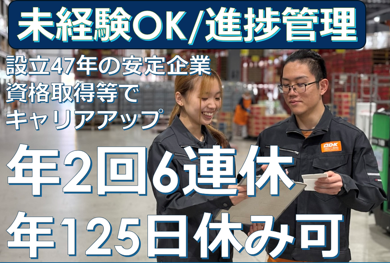 職種/仕事内容 | 仕事内容 <最大125日/年のお休みも可能!2025年 4月から年2回6連休取得制度スタート! コミュニケーションを取りながらのお仕事! キャリアアップを目指せる環境! 未経験者へのフォロー充実で働きやすい 職場環境です!創業40年以上の安定企業> \ 経験不問!未経験者大歓迎! / 学歴や経験は問いません! 先輩や仲間がフォローについて くれるので、しっかりお仕事を 覚えていくことが出来ますよ! <お仕事内容> 居酒屋チェーン店や施設向けの 食材を扱う倉庫での 入荷時の検品作業や格納、 ピッキング作業、出荷作業などに加えて、 スタッフの管理・進捗管理などをおまかせします! ※冷蔵・冷凍・常温の3温度帯ある倉庫です ・入荷 ・在庫管理 ・スタッフの配置・管理 ・関係会社への進捗確認 ・ピッキング、配送準備 ・検品 ・日報作成 ・フォークリフト作業 (資格をお持ちの方のみ) などをお任せします! *15名~20名ほどのパートさんと チームを組みます *メンバーとコミュニケーションを取って 業務を進めていきます おすすめポイント!! 。*――――――――――――――――*。 ■会社負担でフォークリフト免許取得が 可能です!免許取得後、業務開始まで 1週間の練習期間があるので安心◎ ■希望休や連休取得も可能です。 自分の予定を考慮しながら働けます♪ ■平均年齢30代後半の職場です。 20代30代の若手スタッフから40代50代のミドル層の方・子育て中の方など 幅広いスタッフさんが活躍しています ■髪色や髪型も自由♪ ■業務に慣れるまでしっかり教えます! 。*――――――――――――――――*。 |