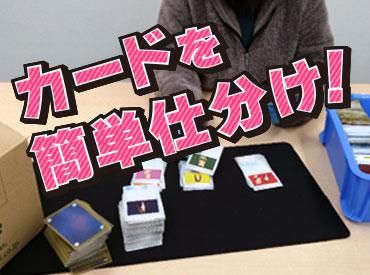 職種/仕事内容 | 仕事内容 トレーディングカードの仕分け・検品・査定業務を行います。 主にレア度ごとの仕分け、カードに傷がないかの目視確認、PCへの入力作業、自動査定機を使った査定作業を担当します。 マニュアル完備で、5名程度のチームで同時に作業を進めるため、未経験の方でも安心して始められます。 接客や電話対応はなく、座り仕事が中心です。 職場見学で仕事風景もご覧いただけます。 |