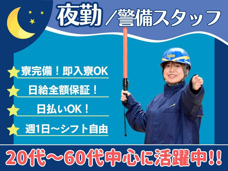 職種/仕事内容 | 仕事内容 ⭐ テイシンは働きやすさに自信あり ⭐ ⸜⸜未経験の方も安心して働ける環境です⸝⸝  ̄ ̄ ̄ ̄ ̄ ̄ ̄ ̄ ̄ ̄ ̄ ̄ ̄ ̄ ̄ ̄ ✅日払い・現金手渡しOK! ✅早上がりでも日給全額保証 ✅週1日~OK! ✅寮完備!即入居可! ✅昼食付♪3日間の事前研修(1日7時間)あり◎ ✅履歴書不要!飛び込み面接OK! ✅気になった方はお電話ください❕❕ TEL▶03-5913-9788 ◆―――――――◇◆◇―――――――◆ <✨履歴書・面接不要の簡易選考あり✨> 応募はとってもカンタン! 携帯に届く専用フォームに 答えるだけで完了♪ 内容を確認後、 担当者からすぐご連絡いたします! ◆―――――――◇◆◇―――――――◆ 夜勤・警備スタッフ大募集❗❗ (。・ω・)尸━━━━━━━━━━━━━⭐ 工事現場などでの、通行人や車の 誘導・案内をお願いします。 住宅街の現場が中心で交通量も少ないため、 交通誘導が初めての方も安心して働けます。 ※その他にも施設警備の案件や 土日祝はイベント警備の案件も多数! ★代表的な1日の流れ(例)★ 21:00 集合して車で現場に移動 21:30 担当エリアで警備開始 23:00 15分休憩 01:00 休憩(1時間) 04:00 15分休憩 06:00 車で集合場所に移動・解散 ※直行直帰OK ⛅暑い季節も無理はさせません⛅ 隊員全員が体に無理なく働けるよう、 こまめな休憩・水分補給はもちろん、 声かけや体調チェックなど、日々の コミュニケーションを大切にしています◎ ━━━━━━━━━━━━━━━━━━━ ⭐"楽しく働くこと"がモットー⭐ 仕事や収入、プライベートなことまで 何でも相談できるあたたかい職場環境♫ わからないことはスグに相談できます❕ 気さくで優しい先輩たちが歓迎します。 ⭐日払い現金手渡しOK◎⭐ 日払いOK!現金手渡しOKなので、 急な出費にもバッチリ対応! 頑張った分の報酬がその場で受け取れます♪ ⭐事前研修を経て安心デビュー⭐ 初日からいきなり現場に出る! なんてことは絶対にありません。 現場に出る前に丁寧な研修があるので、 初めての方も安心してスタートできます♪ ⭐まずはお気軽にお電話ください⭐ お問合せだけもOK!☎03-5913-9788まで お電話お待ちしています♫ ╭━━━━━━━━━━━╮ ⭐東京都内に現場多数あり⭐ ╰━━━━━━━━━━━╯ 東京都内に100ヶ所以上の現場があります! 「家の近くで働きたい!」 「直行直帰で働きたい!」 など、お気軽にご相談下さい♪ |