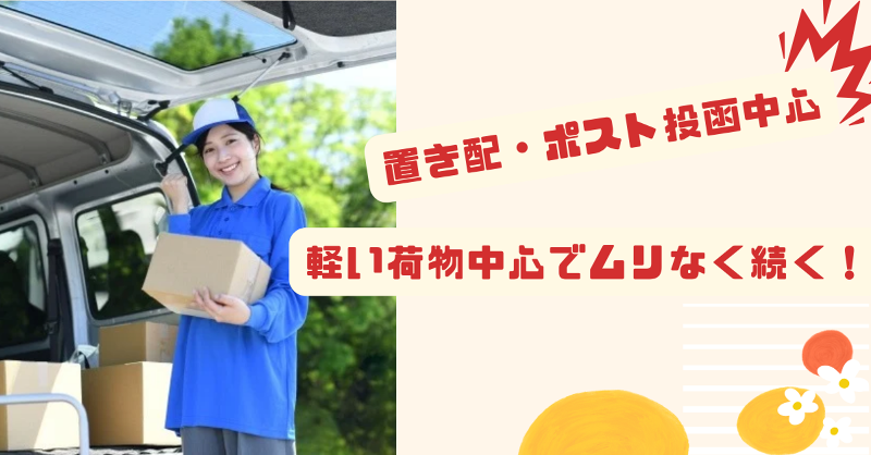 アプリの指示通りに配送するだけ◎|軽自動車配送|本や化粧品など軽い荷物メイン|シニア・女性ドライバー活躍中