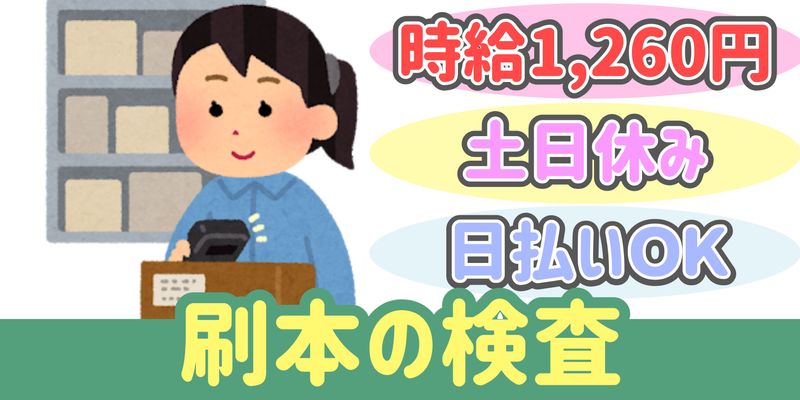 職種/仕事内容 | 仕事内容 データを照らし合わせ表示が出ている部分をチェックするオシゴト ・印刷された刷本を各現場に取りに行く作業 ・刷本を機械にセットしスキャン作業 ~など 微妙な表示は社員に問題がないか判断してもらえるので未経験でも安心です 出張面接いたします!就業前の職場見学OK! ご応募お待ちしております!! 18歳~40代前半の女性活躍中 ・就業場所は、本庄児玉IC 近郊 オススメpoint ・土日休み ・帽子&軍手の支給あり ・ロッカー完備 ・駐車場あり らくらくマイカー通勤 ・未経験者OK ・品質管理の経験ある方尚可 ・土日休みが良い方 ・長期で働きたい方 ・日勤のお仕事お探しの方 ・残業ほぼナシ!定時にピタッと退社したい方 【こんな経験活かせます!】 パート、アルバイト、契約社員 雇用形態問わず、下記の経験ある方は活かせます! ・工場 ・製造 ・倉庫内作業 ・軽作業 ・検査 ・検品 ・品質管理 ※もちろん必須ではありません! まずはお気軽にご応募ください ///////////////////////////////////////// (WEBでご応募の場合) お電話番号を記入していただくと ご案内がスムーズです。 ///////////////////////////////////////// |
