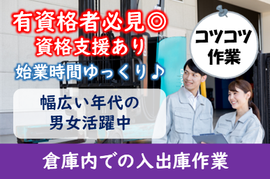 職種/仕事内容 | 仕事内容 ≪物流倉庫でフォークリフト業務≫フォーク資格所有者大歓迎♪常温倉庫内でのリーチフォークリフト業務です♪遅め出勤なのでプライベート充実★ <仕事内容> ◆フォークリフト業務(リーチフォークリフト) ・伝票を確認しながら商品の入出庫業務 [入出庫]製品の積み込み・製品ラックへ棚入れ・荷降ろし ◆ケースに入った食品を台車にのせるピッキング作業 ※常温倉庫内作業となります。 立ち作業でのお仕事です。 個人作業となります。 ≪職場環境≫ 男性が多い職場です。 休憩室完備 アピールポイント <仕事内容> ◆フォークリフト業務(リーチフォークリフト) ・伝票を確認しながら商品の入出庫業務 [入出庫]製品の積み込み・製品ラックへ棚入れ・荷降ろし ◆ケースに入った食品を台車にのせるピッキング作業 ※常温倉庫内作業となります。 立ち作業でのお仕事です。 個人作業となります。 ≪職場環境≫ 男性が多い職場です。 休憩室完備 \充実した福利厚生/ ◎社会保険・雇用保険完備 ◎有給休暇有(6ヶ月経過後、10日付与)※規定あり ◎残業手当 ◎交通費支給(規定内) ◎確定拠出年金制度 ◎週払い制度(週3回対応) ◎お友達推薦制度あり(規定有り) ※1名につき3万円~10万円臨時給与として支給 ◎車(マイカー)通勤可(無料駐車場あり) ◎作業服・安全靴貸与 ◎資格支援有り ◎社員食堂・休憩室あり ◎福利厚生プログラム (宿泊、グルメ、ショッピングなど大幅割引が受けられる10万アイテムのメニューがあります。) |