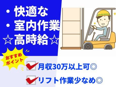 <★高時給★月収30万円以上可◎>食品の仕分け&フォークリフト運搬!室内作業で快適♪