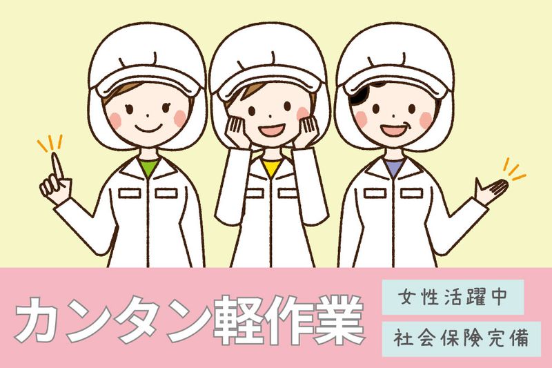職種/仕事内容 | 仕事の内容 ◎扶養内もOK! 空調完備の食品工場で働きやすい職場です。 60歳までの幅広い年代の女性が活躍中♪ 工場にて簡単な軽作業をおこなっていただきます。 ひと言で言うと、日々の食卓に並ぶ食材の野菜の包装や選別です。 力仕事はございません。 週3日~週5日の勤務が可能です。 ご自身のライフスタイルにあわせて働くことが可能ですよ♪ LED電球で綺麗で明るい職場で、社員食堂ではコーヒー・紅茶が無料なのも嬉しいです♪ ◎空調完備で1年を通して快適で、お仕事に集中できる職場環境ですよ♪ ◎扶養内で働きたい方対象のお仕事です♪ ◎主婦の方も活躍中! 働くママさんも在籍しております! 久々にお仕事復帰したい…という方も まずはお気軽にご相談くださいね♪ すぐにでもお仕事を始めたい方にもおススメのお仕事です♪ ***************** 扶養内OK!パートタイムのお仕事 20代30代40代50代60代の女性が活躍中 中高年世代活躍中 週3日~週5日勤務を選択可能♪ 平日のみの勤務もOK 土日できる方歓迎 子育てと両立可能♪ 出張面談承ります! ***************** ◎職場見学会毎日実施中! 実際の職場をご覧いただいて、実際に勤務するかどうかを決めていただいています。 最短で職場見学会の翌日から勤務開始可能です♪ |