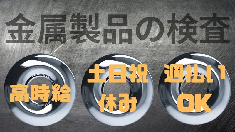 金属製品の検査・汚れ落とし/時3交替/高時給でしっかり稼げる/土日祝休み/週払い可