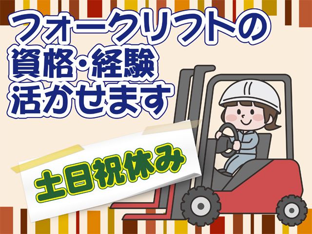 【群馬県玉村町】フォークリフト作業、積極採用中!!軽作業!!急募!!