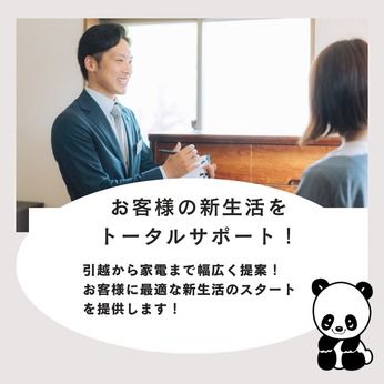 職種/仕事内容 | 仕事内容 === 仕事内容を簡単にご説明 === お客様のお引越しをサポート! お客様宅に訪問し、引越の御見積を対応させて 頂く仕事です。 お問い合わせをいただいたお客様宅を訪問 ご要望をヒアリングし、引越しプランをご提案 引越プランはもちろん、転居後や転居前に必要な生活サービスのご案内 お客様の不安や疑問に答え、安心して新生活を始められるようサポート、 接客を通じて信頼関係を築き、新生活を一緒に準備する役割です。 === 働きやすさのポイント解説1 === ご案内するのは、引越をご検討中のお客様のお宅へ 訪問し当社の引越サービスのご案内を行います。 引越はお客様の新生活が始まる大切なタイミング、 スムーズにスタートできるよう、サポートをお願いします。 チームサポーターと呼ばれるリーダーが、 事前準備からアフターフォローまで完全サポートします === 働きやすさのポイント解説2 === *気になる訪問の件数 ・1日平均4件 お客様対応予定が日々キッチリ入るので、 自分で設定できるか心配という方も 安心の環境です。 アポインターさんが日程も調整してくれるので、 あなたは訪問して提案するだけ!! サカイ引越センターを選んで頂く成約率は、 80%以上、4件商談に行けば3件はご成約を 頂くことができます! サカイ引越センターでは未経験でも、活躍しやすい充実した研修制度をご用意しています。 そのため未経験者でも安心してスタートできる環境が整っており、 特に自分の生活スタイルに合わせた働きやすさが実感できる職場です。 例えば、16時以降の商談を行わないルールがあり、 仕事と家庭のバランスを取りながら業務に集中できる点が魅力です。 サカイの強みである「引越業界No.1」の実績や、高品質な作業サービスを伝えることを重視しています。 お客様との打ち合わせ時に、最初の5分でお客様との信頼関係を築くことを意識しています。 生活状況をヒアリングした上で、引越の前と後の生活をスムーズにスタート できるよう、梱包代行の提案や、家電販売などのご提案を行っています。 ワンストップサービスの提供により、お客様に「サカイさんにお願いする」と言って頂くことも多数あります。 |