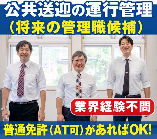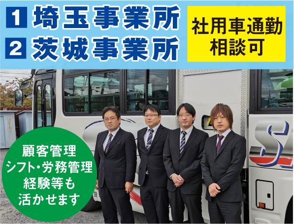 職種/仕事内容 | 仕事内容 働きやすさも、やりがいも叶えられる場所で、 人と地域をつなぐ「運行管理」に挑戦しませんか? < この求人のポイント > ◆土日休み・残業月20時間以下♪ ◆月給34万~38万円以上+各種手当 ◆直行直帰OK・社用車貸与可/規定有 ◆独り立ち後は自己裁量で予定調整可! ◆国や自治体との取引で安定基盤あり ◆将来の管理職候補・キャリアUP可能 「人の役に立つ仕事がしたい」 「コミュニケーション力を活かしたい」 「メリハリのある働き方がしたい」 そんなあなたにピッタリの運行管理の仕事です! <お任せするのは…> 地域の子どもたちや高齢者、障がいのある方々の暮らしを支える、送迎車両の運行管理業務をお任せします。 子どもたちや高齢者、障がいのある方々など交通弱者の日常の移動を支える送迎車両。その安全かつスムーズな運行を管理する仕事です。 お客様・ドライバーとの信頼関係を築き、地域に貢献するやりがいがあります。 【具体的には】 ■契約先の定期的な訪問 ・お客様への書類提出や打ち合わせ、要望のヒアリング ・ドライバーとの面談、コミュニケーション ■ドライバーの労務管理 ・電話やメール、対面での相談対応 ・健康状態や勤務状況の確認、シフトの調整 ■書類作成 ・運行スケジュールの作成 ・運行実績報告書、請求書などの作成 ■車両管理 ・車両の整備や点検の手配、管理 ◆まずは、先輩に同行することからスタート。3カ月ほどかけて一通りの流れを掴んだら、少しずつ担当を引き継いでいきます。分からないことがあればいつでも相談できる環境なので、ご安心ください! 【ある一日の流れ】 ▽8:00 出勤 メールチェック ▽9:00 電話対応・書類作成等の事務作業 ▽10:00 契約先へ出発 ▽11:00 お客様と打ち合わせ、ドライバーとの面談 ▽12:00 休憩(2時間) ▽14:00 午後の訪問 ▽17:00 オフィスに戻り翌日の準備 ▽18:00 退勤 ★直行直帰も可能です!日によって、3~4件訪問する日もあれば、1件訪問して残りの時間は事務作業という日も。「近くまで行くから顔を出してみよう」「ドライバーから電話があったから会って詳しく話を聞こう」など、状況に合わせて予定を組み立てながら、お客様とドライバー双方との信頼関係を築いていきます。 ★オフィス内もアットホーム!先輩や上席とも気軽に話しやすい雰囲気も自慢!オフィス内ではメールや電話対応・書類作成などが中心となります。 <契約先/お客様は?> 学校、幼稚園、福祉施設、大手スポーツクラブなど。国や自治体、社会福祉法人からのご依頼が多く、99%のお取引で年間契約をいただいています。 <現場ドライバーは?> 当社に所属する60代~70代の方が中心。契約先の所有車両で送迎業務を行っており、働き方や休みに関する希望など気軽に相談してもらえる関係性づくりを大切にしています。 <未経験でも安心のサポート体制> 最初は先輩がマンツーマンで仕事の流れを教えます。2名体制で担当するため、困ったときはいつでも相談できる環境。安心して始められるよう、しっかりサポートします。 <仕事のポイント> 訪問が中心で、お客様やドライバーと直接会って話すことで状況を正確に把握し、信頼関係を築いていきます。 <担当するのは?> メイン・サブの2名体制で、1人あたり15~20件の契約先、30~40名ほどのドライバーを担当します。 ◎将来のキャリア 適性に応じて、新規契約や入札に関わる営業業務に挑戦することも可能。また、管理職候補として経験を積み、運行管理のメンバーや全体をマネジメントする課長・所長へとキャリアアップも目指せます! ◎安定した環境で充実したキャリアを形成 国や自治体、社会福祉法人などとの取引が中心で、100以上の自治体エリアに事業を展開。設立以来14期連続増収増益の安定基盤のもと、人と地域を支える誇りを持ってキャリアを築けます。 【勤務地】 ★ご希望の勤務地を選択OK♪ ①埼玉事業所 埼玉県さいたま市大宮区桜木町4-263-5F 交通「大宮駅」西口より歩8分 ★車通勤可 ②茨城事業所 茨城県常総市内守谷町きぬの里3-19-3 交通「谷和原インター」より車で5分 ★車通勤可 ★社用車通勤&直行直帰OK!  ̄ ̄ ̄V ̄ ̄ ̄ ̄ ̄ ̄ ̄ ̄ ̄ 通勤ラッシュを避けて社用車での通勤も可能。社用車を貸与し、ご自宅付近の駐車場代を会社が負担します(規定有)。訪問スケジュールによって直行直帰もOK! 以下にも事業所有!希望される方はご相談下さい ■神奈川事業所(神奈川県川崎市川崎区) ■東京本社(東京都中央区) ■江戸川営業所(東京都江戸川区) ■千葉営業所(千葉県四街道市) ※群馬(前橋市)、静岡(富士市)にも事業所展開中! 【社員インタビュー】 ◇上司Sさん 【Q.未経験からでも大丈夫ですか?】 →車の免許があれば、他に資格や経験は必要ありません。パソコンでの作業も事務のメンバーと連携できるため、特別なスキルがなくても大丈夫。人と接する仕事なので、コミュニケーション力が最も大事です。 ◇先輩Nさん 【Q.どんな雰囲気の職場ですか?】 →穏やかで優しい人が多く