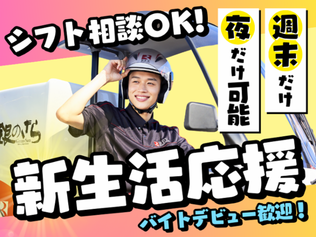 職種/仕事内容 | 仕事情報 ● 仕事内容 お寿司のデリバリー(宅配)スタッフ募集! 【お任せしたいのは…】 ・お料理のセッティング ・お寿司の配達 ・配達先住所の確認 ・代金の受け取り ・容器(桶)の回収 など! 未経験の方やバイクの運転が好きな方大歓迎! バイトデビュー歓迎◎ 「春からの生活に備えて 今のうちにバイトを決めたい!」 そんな、賢く始めたい方に最適です! \未経験でも安心/ 配達ルートはアプリで簡単ナビ! 運転に自信がない方も 先輩の追走研修や 動画マニュアルがあるから大丈夫! 教習所コースの講習もあるので安心です◎ ※アプリ未導入の店舗もあります 新生活の予定も優先OK! 免許教習や卒業旅行など 今しかできない予定を最優先してOKです◎ シフトは自己申告制だから 学業や予定との両立も安心です♪ 「今週は教習所に通い詰めたい」 「来週は友達と旅行!」なんて相談も 遠慮なくしてくださいね。 テスト期間はもちろん、 新学期の授業が決まった後の シフト相談も柔軟に対応します! 働きやすさ抜群! 銀のさら・釜寅は、 「週末だけ働きたい」「空いた時間にシフトに入りたい」 そんなあなたにピッタリ! シフト相談可能、店舗により週1日の3時間から 勤務可能なのでかけもちバイトも可能☆ すでに働いている主婦や友達の紹介で、 アルバイトを始める人も多いので、 和気あいあいとした雰囲気が特徴の職場です! 会社概要 ライドオンエクスプレスグループは 「ご家庭での生活を『もっと美味しく、もっと便利に』 をテーマに、宅配寿司「銀のさら」 宅配御前の「釜寅」などの宅配事業を主としています。 全国の宅配拠点(デリバリー)ネットワークを活かし 現在では宅配寿司市場でシェアNO.1の 地位を確立しております。 |