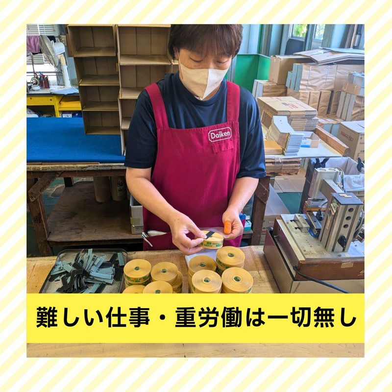 職種/仕事内容 | 仕事内容 敷居スベリ(住宅用テープ)を箱に詰めたり、 加工するだけの簡単軽作業です。 未経験の方や女性スタッフも 安心して働けます。 先輩スタッフがフォローしますので、 分からないことはどんどん聞いてください。 隣りに頼れる先輩がいるので安心です。 今後の事業拡大を見据え 新しい人材を募集します! 入社された方には長く勤めて頂きたいので 待遇面は惜しみません。 簡単な軽作業なので、 体に負担なく安定して働けますよ♪ 工程を一度覚えてしまえば、 あとはコツコツ作業するだけ! 頑張りは、昇給等でしっかり評価しますので やる気のある方なら どんどんステップUPが可能! 組立や加工・梱包などの軽作業が 未経験の方もご安心下さい! 先輩スタッフがサポートします♪ 職場見学も随時受け付けていますので、 興味がある方はお気軽に お問い合わせください。 |