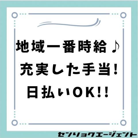 給与 | 時給1,200円以上 給与 時給1200円+交通費(規定あり) ★日払い・週払いも対応しております! 【世帯主手当】 住宅手当(3,000円~5,000円)、家族手当(配偶者1万円、お子様一人5,000円)あり |