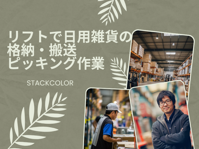 職種/仕事内容 | 仕事内容 お急ぎの方はこちらにお電話ください! ▶090-6594-9375(担当携帯) SMSでの問い合わせもOKです◎ 倉庫内にて日用雑貨(事務用品、トイレットペーパーなど)の入庫検品、仕分け作業 【具体的には..】 ・リーチリフトを使用して入庫した商品の搬送、格納作業 ・リーチリフトを使用したピッキング、商品の出荷作業 ・その他、ピッキング・仕分け・梱包などの手作業も合わせて行います 仕事を覚えるまでは先輩がフォローしてくれますので安心! |