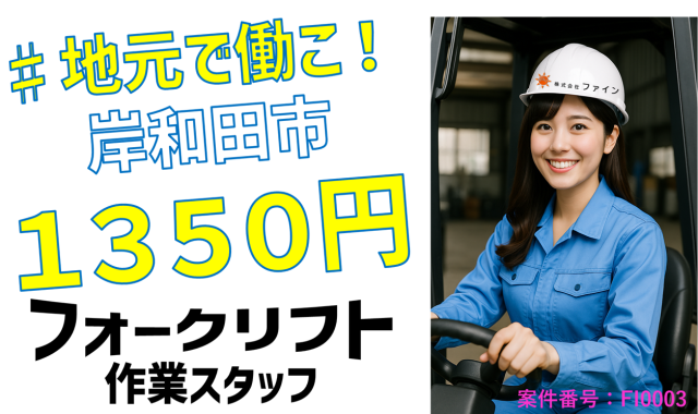 【高時給1350円~1400円】倉庫内でのフォークリフト入出荷作業!8時~17時固定勤務で働きやすい . ☆お電話で「案件番号FI0003を見て」と お伝えください! ~~~~~~~~~~~~ フォークリフト作業スタッフの 求人案件です♪ ~~~~~~~~~~~~ \ここがポイント/ ☆土日祝休み ☆時間固定勤務 ☆夜勤なし 日勤のみのお仕事なので 生活リズムが崩れる心配も ありません♪ ハローワークでお仕事をお探しの方にも オススメの案件です♪ フォークリフト資格を活かして 一緒にお仕事しませんか? ______________ \ファインのここが嬉しい/ 工場への見学時、同行します! あなた専属の当社担当者が しっかりとフォローしますので 見学時も安心☆ もちろん就業後も 職場での悩みや不安なども お気軽にご相談ください! ◆社員登用の実績あり ◆うれしい週払いOK(規定あり) ◆残業代はきっちり支給です! .