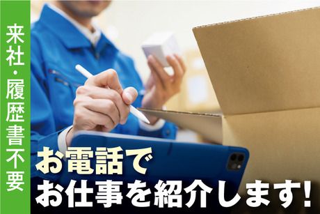職種/仕事内容 | 仕事内容 ◆物流倉庫内でモクモク進める軽作業! 物流倉庫でのカンタンな軽作業をお願いします。 扱うものは【自動車や工作機械の部品(ベアリング)】です。 ベアリングの格納・補充業務をお任せします。 未経験でも大丈夫◎ 難しい作業は一切ありませんが、 重い物で 約20kg を運んでいただきます。 力作業ができる方大歓迎! ◆経験不要♪20代~50代の男性スタッフ活躍中! 「軽作業のお仕事は初めて」 「倉庫内作業の経験がない」 「久しぶりのお仕事復帰」 「モクモク、コツコツ作業が好き」 「じっとしているより体を動かして働きたい」 など…どんな方も大歓迎! お仕事の進め方などしっかりお教えします♪ 20代から50代と幅広い年代の男性が活躍中! 「筋トレも兼ねて働ける」というスタッフの声も◎ ◆平日だけの勤務!週3~OK!週末しっかり休める◎ 日勤専属&土日祝お休みで安定して続けやすい環境です♪ メリハリよく働ける職場なので 高時給でしっかり稼ぎながら ブライベートも大事にできます! また、週3日~OKなので、 副業やWワークとして働くスタッフも活躍中! もちろんガッツリ週5日勤務も歓迎★ 自分に合った働き方ができます◎ 【来社&履歴書不要!電話でお仕事のご紹介が可能です】 今回募集しているお仕事に関して もっと詳しく説明してほしいと思われた方にはお電話でしっかり説明します。 来社&履歴書不要でお仕事のご案内が可能なので 仕事や休みの日や仕事終わりなど、 あなたの都合のよいタイミングでご連絡いただければ希望のお仕事をご案内します。 まずはご応募ください。 |