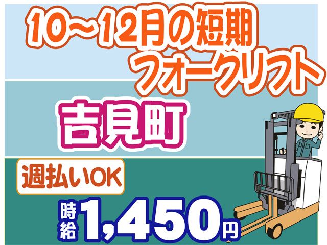 フォークリフト経験者活躍中 日勤、土日祝休み、2カ月の短期 週払いOK 車通勤可