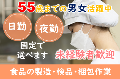 日勤・夜勤が選べます♪【竹輪などの練り物製品の検品、梱包作業!】大手食品メーカーで長期安定◎未経験者歓迎!!安食駅からの送迎もあるので通勤も便利◎